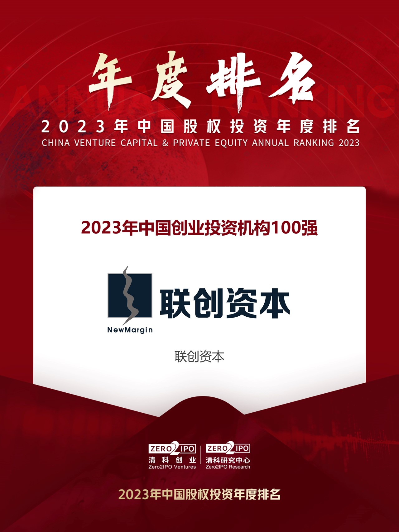 聯(lián)創(chuàng)榮譽(yù)|聯(lián)創(chuàng)資本再次榮膺2023年中國(guó)創(chuàng)業(yè)投資機(jī)構(gòu)100強(qiáng)